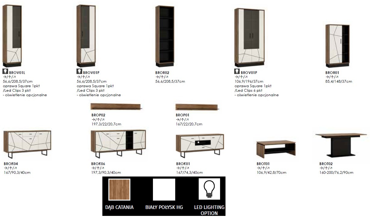 A BROLO elemes szekrényrendszer kiváló választás ha ultra modern nappali bútort szeretne otthonába.
