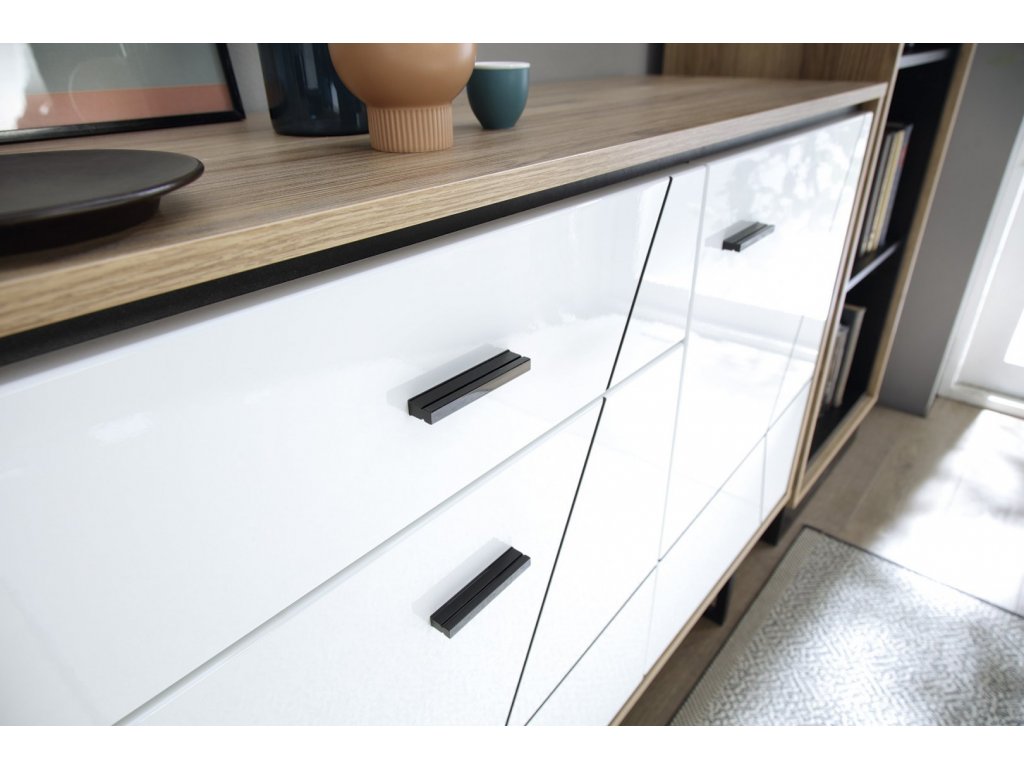 -Szín: Matt Catania tölgy-fekete gyöngy korpusz / Magasfényű fekete csíkkal fehér front *(DAB CATANIA-BLACK PEARL / BIALY POLISK) A fronton a csíkok nem matricák hanem a fekete alapra van húzva a magasfényű fehér fólia.