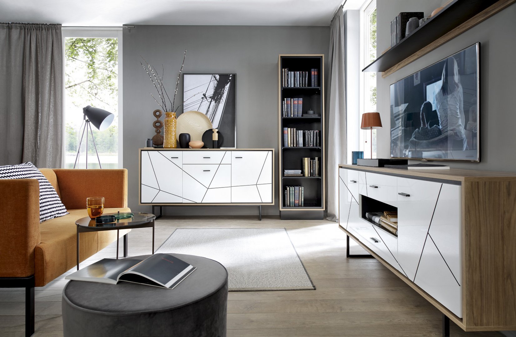 A BROLO elemes szekrényrendszer kiváló választás ha ultra modern nappali bútort szeretne otthonába.
