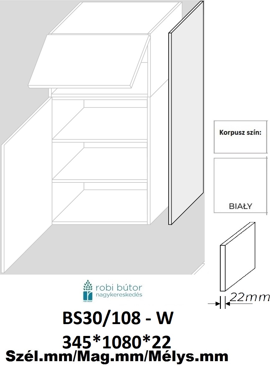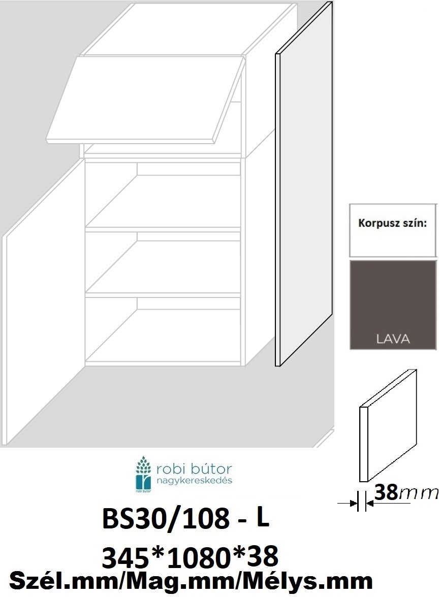 A 108cm(72+36cm) magas felső elemek oldal korpusz vastagításának megvalósítására szolgáló elem.
