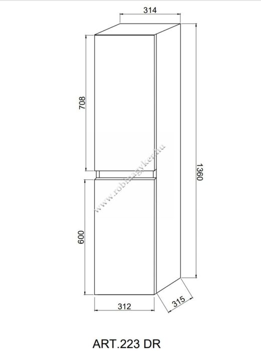 méretei: 31,4×33,5x136cm (szél./mélys./mag.)