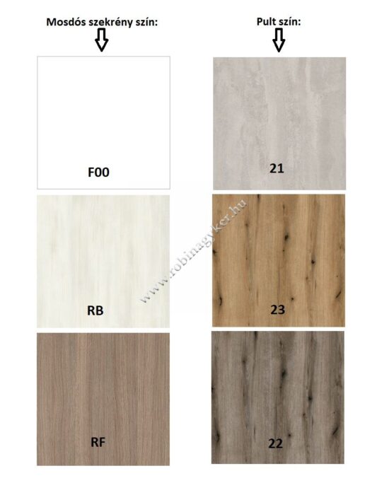 -A 38mm vastag pult színe lehet: – 21.CONCRETE vagy -22.FOSSIL OAK vagy -23.NATURAL OAK.