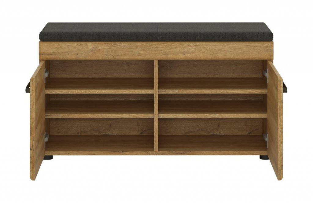 A CORTINA elemes szekrényrendszer kiváló választás ha elegáns fa hatású előszoba bútort szeretne otthonába. A frontok kidolgozása a klasszikus fabútorokra emlékeztet,míg a vitrinek üveges oldalfalas megoldása megtöri a szilárd tömböket és optikailag lágyítja a kontrasztot. A csilapított ajtók és fiókok becsempészik a modernitást.