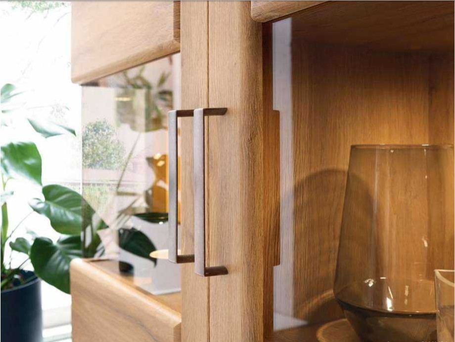 A CORTINA elemes szekrényrendszer kiváló választás ha elegáns fa hatású nappali bútort szeretne otthonába. A frontok kidolgozása a klasszikus fabútorokra emlékeztet,míg a vitrinek üveges oldalfalas megoldása megtöri a szilárd tömböket és optikailag lágyítja a kontrasztot. A csilapított ajtók és fiókok becsempészik a modernitást.
