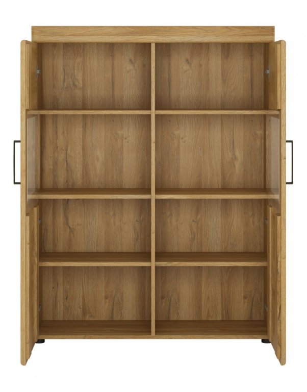 A CORTINA elemes szekrényrendszer kiváló választás ha elegáns fa hatású nappali bútort szeretne otthonába. A frontok kidolgozása a klasszikus fabútorokra emlékeztet,míg a vitrinek üveges oldalfalas megoldása megtöri a szilárd tömböket és optikailag lágyítja a kontrasztot. A csilapított ajtók és fiókok becsempészik a modernitást.