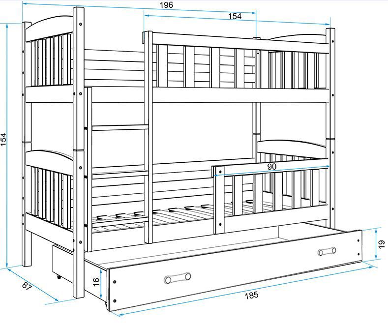 CUBUS BUNK 190X80 FENYŐ EMELETES ÁGY MATRACCAL,ÁGYNEMŰTARTÓVAL