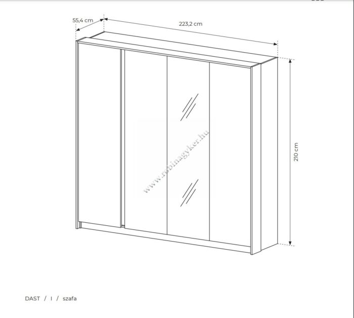 Szélesség: 223,2 cm Magasság: 210 cm Mélység: 55,4 cm