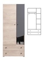 DL3* 2Ajtós-2Fiókos szekrény 90/190/90cm (szél./mag./mélys.)