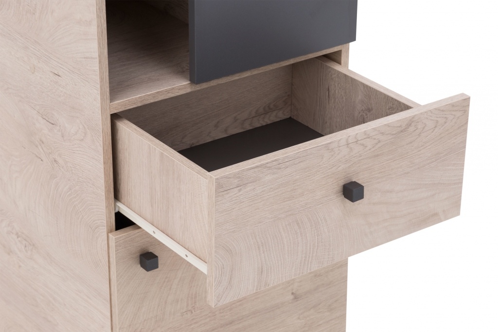 A képen látható szín összeállítás: –DAB(TÖLGY) matt korpusz / ANTRACYT (SZÜRKE) matt front