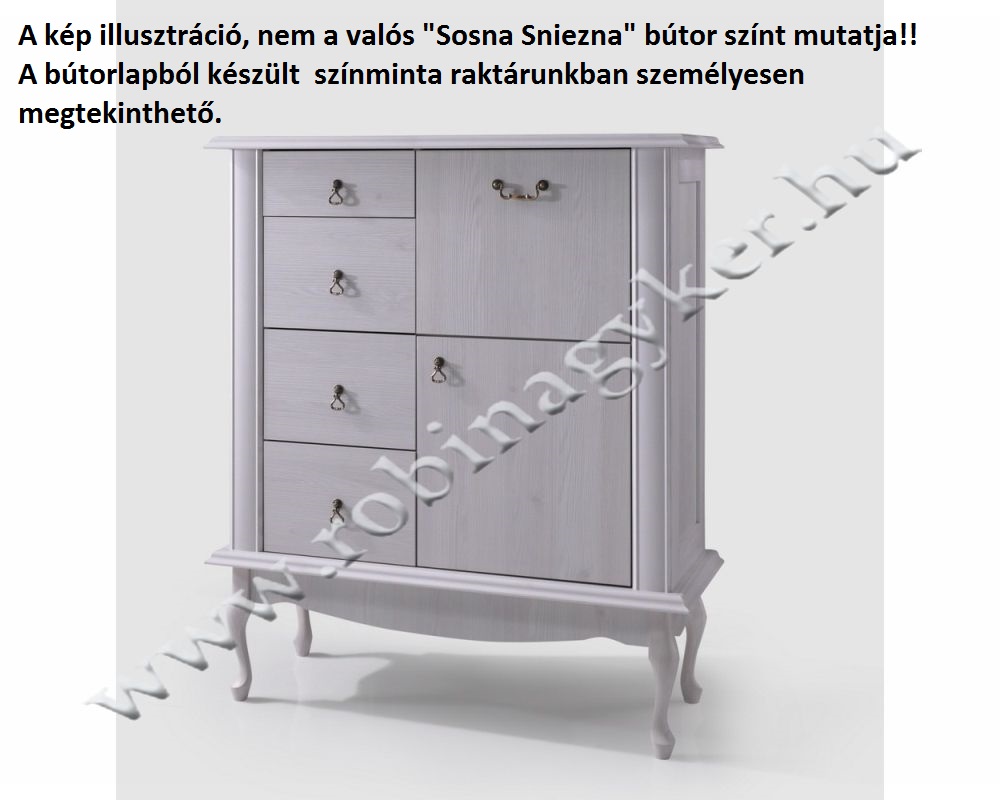 –SOSNA SNIEZNA ( VILÁGOS FENYŐ ) vagy DAB LEFKAS színekben rendelhető.A monitor egyéni színfelbontás miatt nem vállalunk felelősséget ha nem egyezik meg az interneten választott szín az eredetivel amely mindig megtekinthető raktárunkban élőben !!!