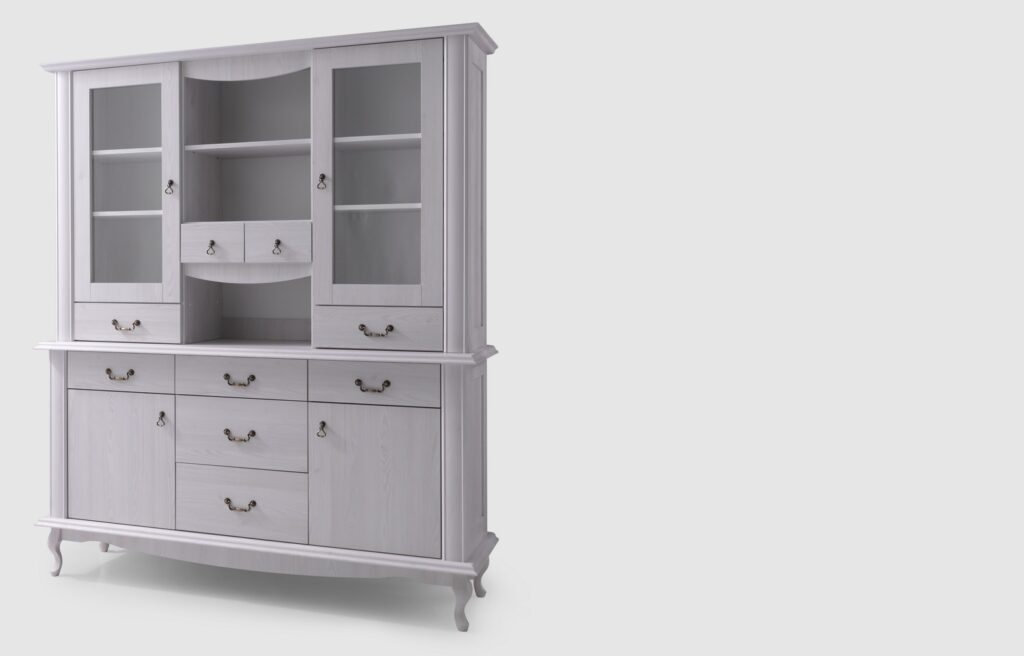 -Elemenként rendelhető Klasszikus stílusú bútor család melynek korpusza laminált 16mm-es faforgácslapból,frontja pedig MDF díszkeretléccel készül.A lábak tömör fából készülnek.
