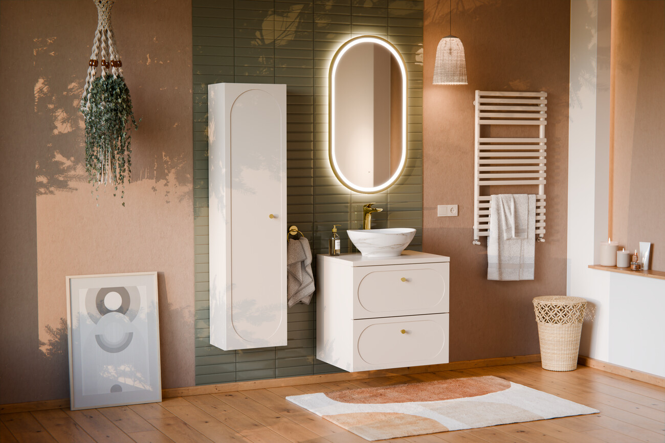 DONNA SAND fürdőszoba bútor – inspiráló 2026 homokbézs dekorral, lekerekített formákkal