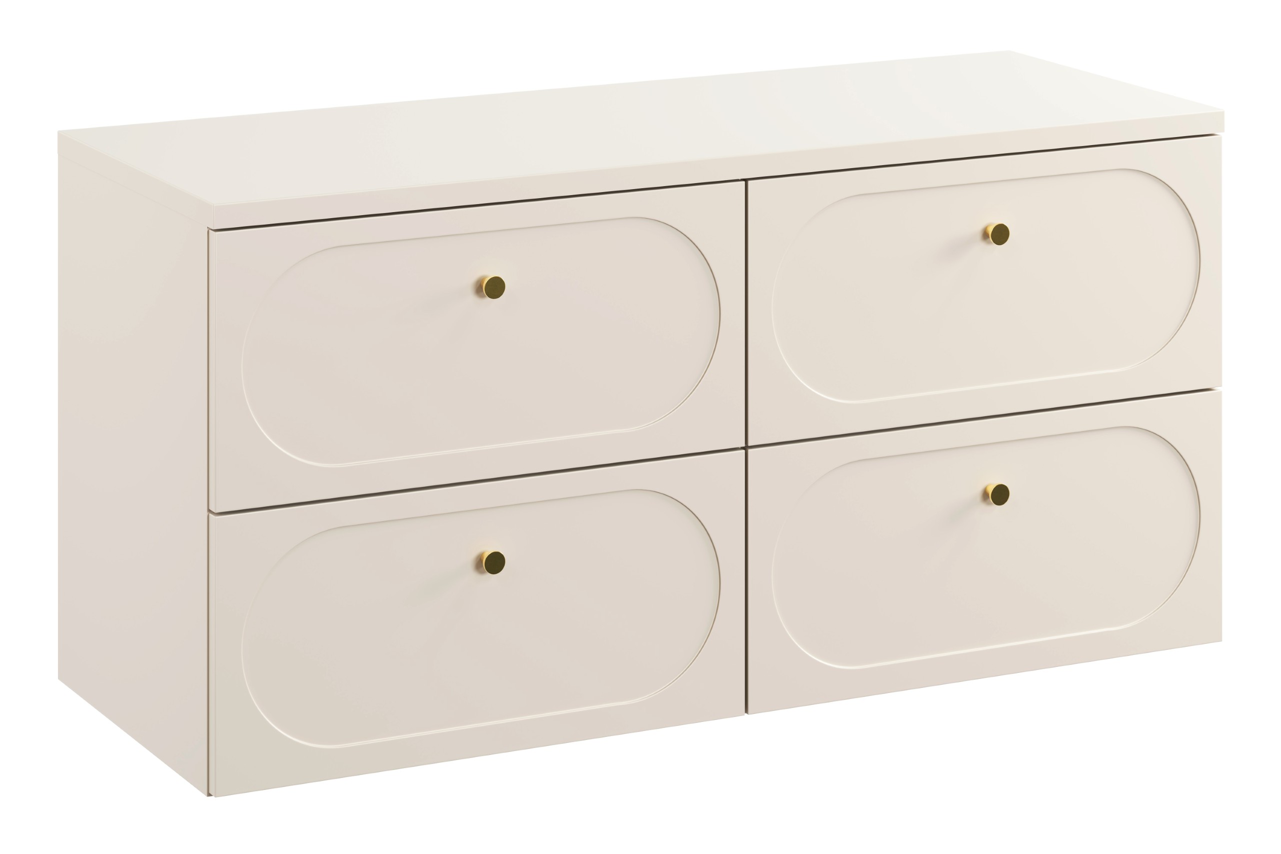 inspiráló 2026 DONNA SAND komplett fürdőszoba bútor szett 120 cm – SET-DS B SAND 120CM homokbézs dekorral, mosdós alsó szekrénnyel és bútormosdóval.