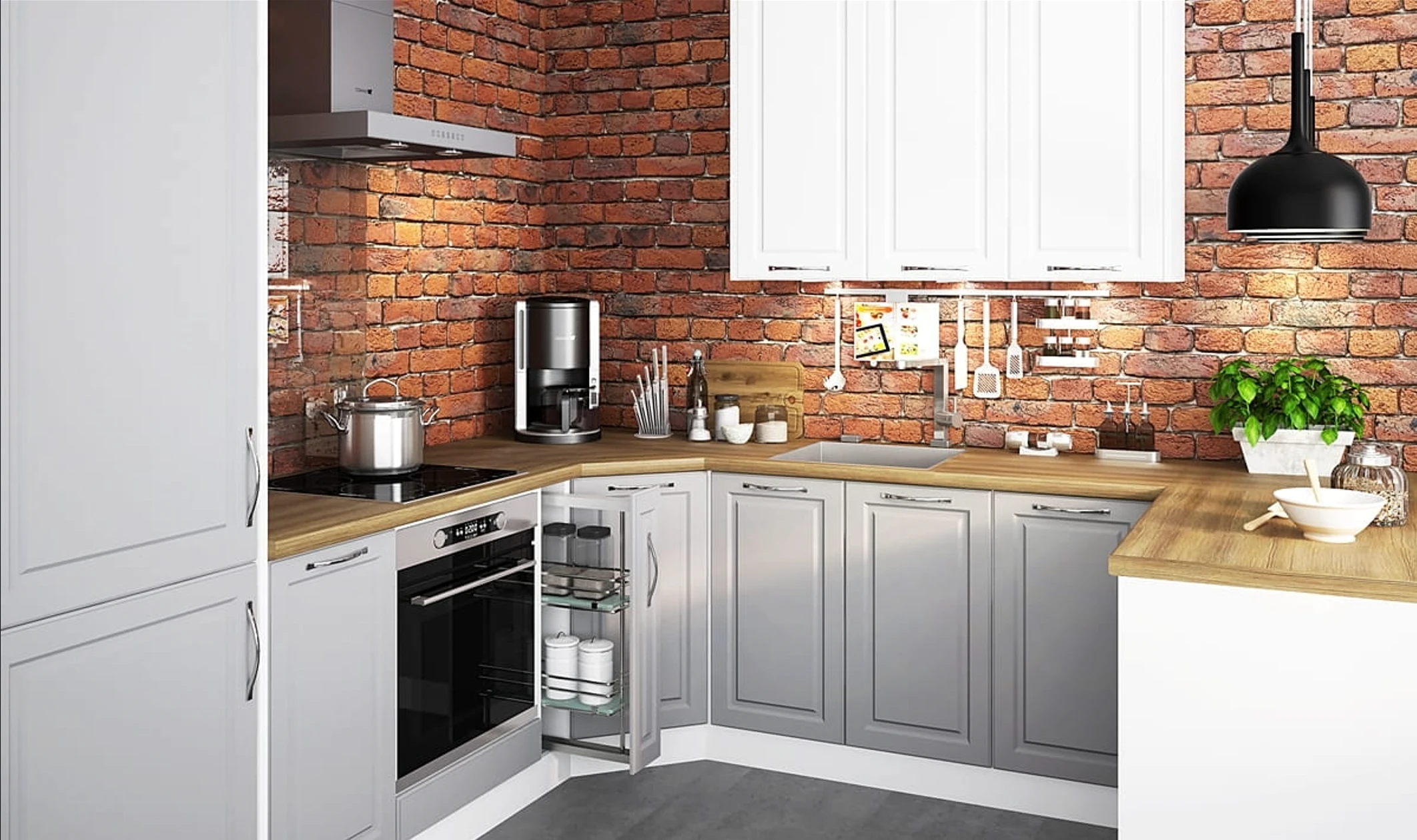 Kis alapterületnél érdemes a fehér vagy a light grey stone frontokat választani, mert ezek optikailag tágítják a teret. Ha ehhez világos korpusz és világos munkalap társul, a helyiség szellősebbnek hat. Nagyobb konyhában viszont bátrabban lehet kontraszttal dolgozni: a grey stone front vagy a sötétebb korpusz izgalmasabb, elegánsabb, markánsabb karaktert adhat. A dąb artisan korpusz különösen jó megoldás lehet akkor, ha valaki melegebb, természetesebb összhatást keres, míg a fekete vagy lava korpusz modernebb és határozottabb irányt képvisel. A korpuszszínek hivatalosan white, grey, lava, oak artisan és czarny változatban szerepelnek a gyártónál.