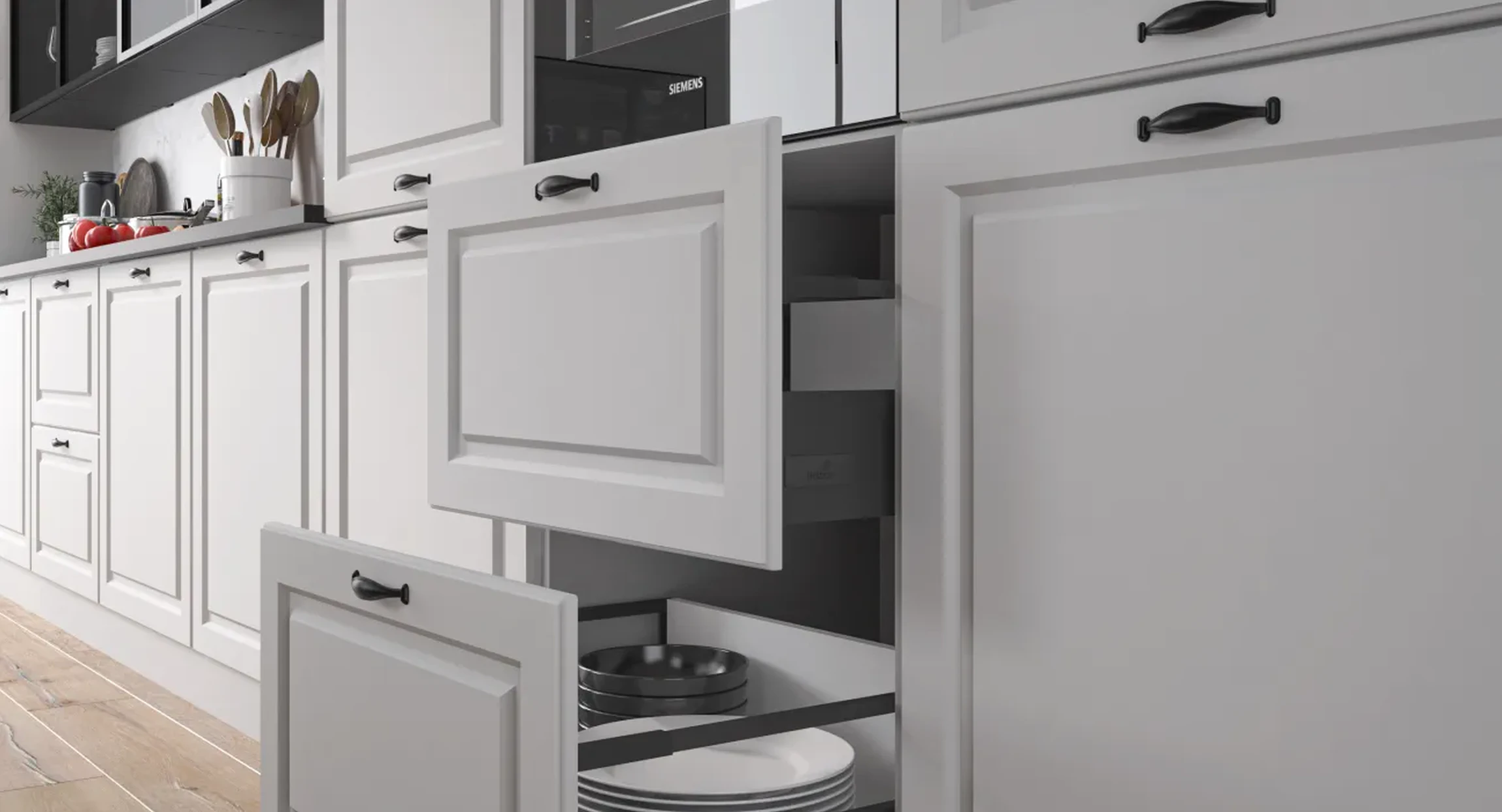 A jó konyhabútor a hétköznapokban derül ki igazán. Nem akkor, amikor először meglátjuk, hanem akkor, amikor naponta többször nyitjuk-csukjuk, pakoljuk, töröljük, rendezzük. Az EMPORIUM családnál a gyártó több olyan részletet is megad, amely a napi használat során fontos. Ilyen a csendes csukódás, a teljes kihúzású fiók opció, a többféle korpuszméret, a felnyílós szekrények lehetősége, valamint a 10–15 cm-es lábmagasság.