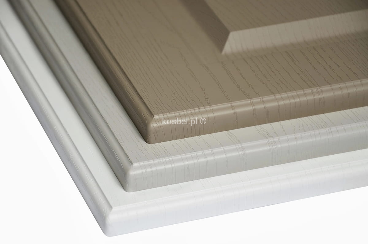 A frontok 16mm vastag MDF fóliázott ajtólapok, széles marású mintával.