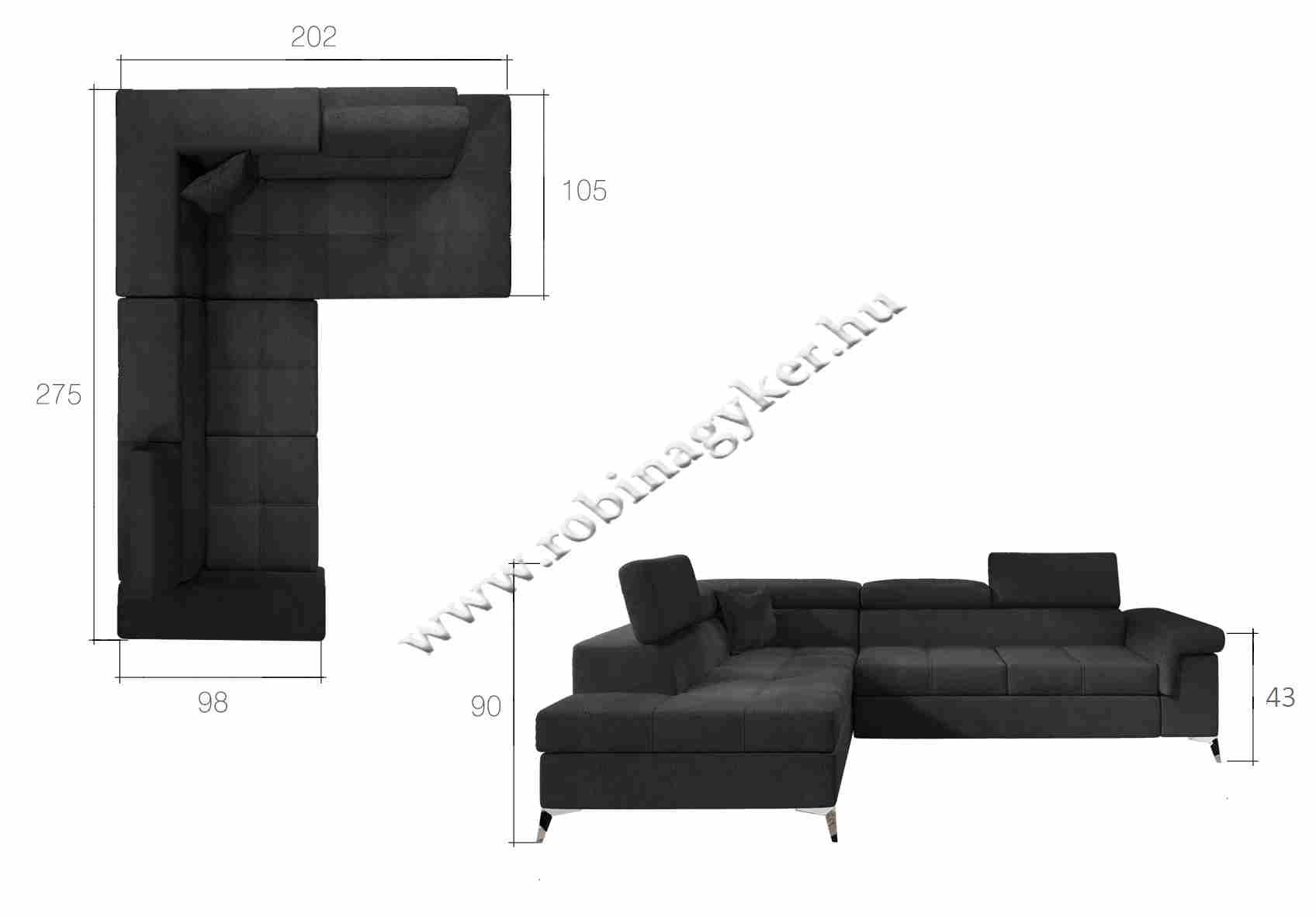 -Szélesség 275 cm # Magasság 70/90 cm # Mélység 202cm#