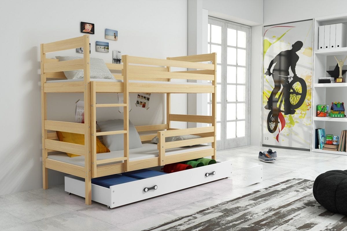 ERIKA BUNK 160X80 FENYŐ EMELETES ÁGY MATRACCAL,ÁGYNEMŰTARTÓVAL