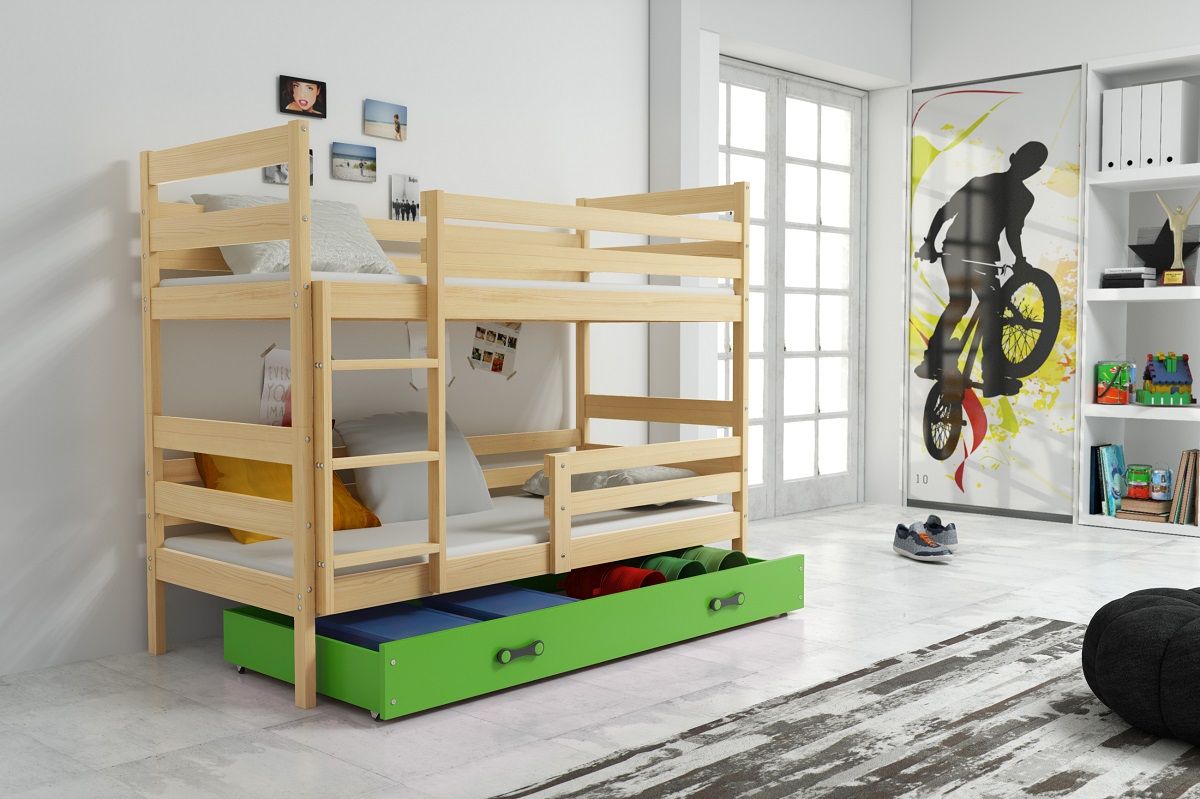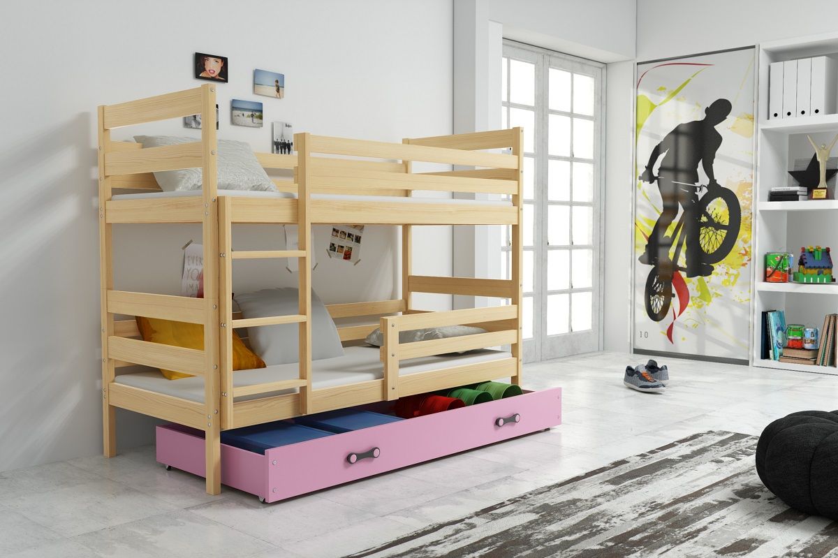 ERIKA BUNK 200X90 FENYŐ EMELETES ÁGY MATRACCAL,ÁGYNEMŰTARTÓVAL