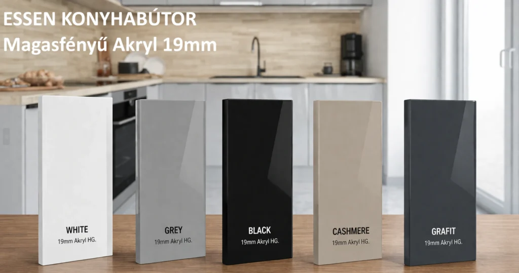 Azoknak, akik konyhabútor, elemes konyhabútor, moduláris konyhabútor, olcsó konyhabútor vagy modern konyhabútor kulcsszavak mentén keresnek jó megoldást, az ESSEN komoly alternatíva lehet. Nem azért, mert a legolcsóbb minden piaci opció közül, hanem azért, mert látványban, műszaki tartalomban és tervezhetőségben kiegyensúlyozott, jól eladható, hosszú távon is szerethető választásnak tűnik. A magasfényű akril frontok üvegszerű megjelenése, a színkombinációk szabadsága és a moduláris felépítés együtt olyan csomagot adnak, amely ma is nagyon versenyképes a modern konyhabútorok piacán.