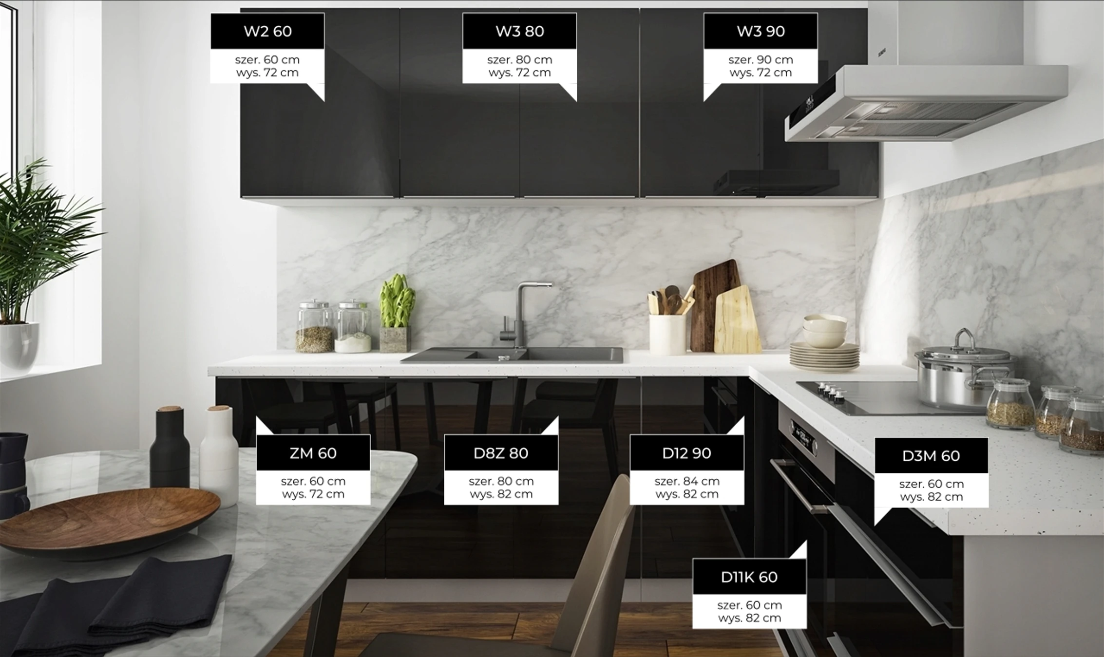 ESSEN KONYHABÚTOR BLACK Magasfényű sarok Összeállítás