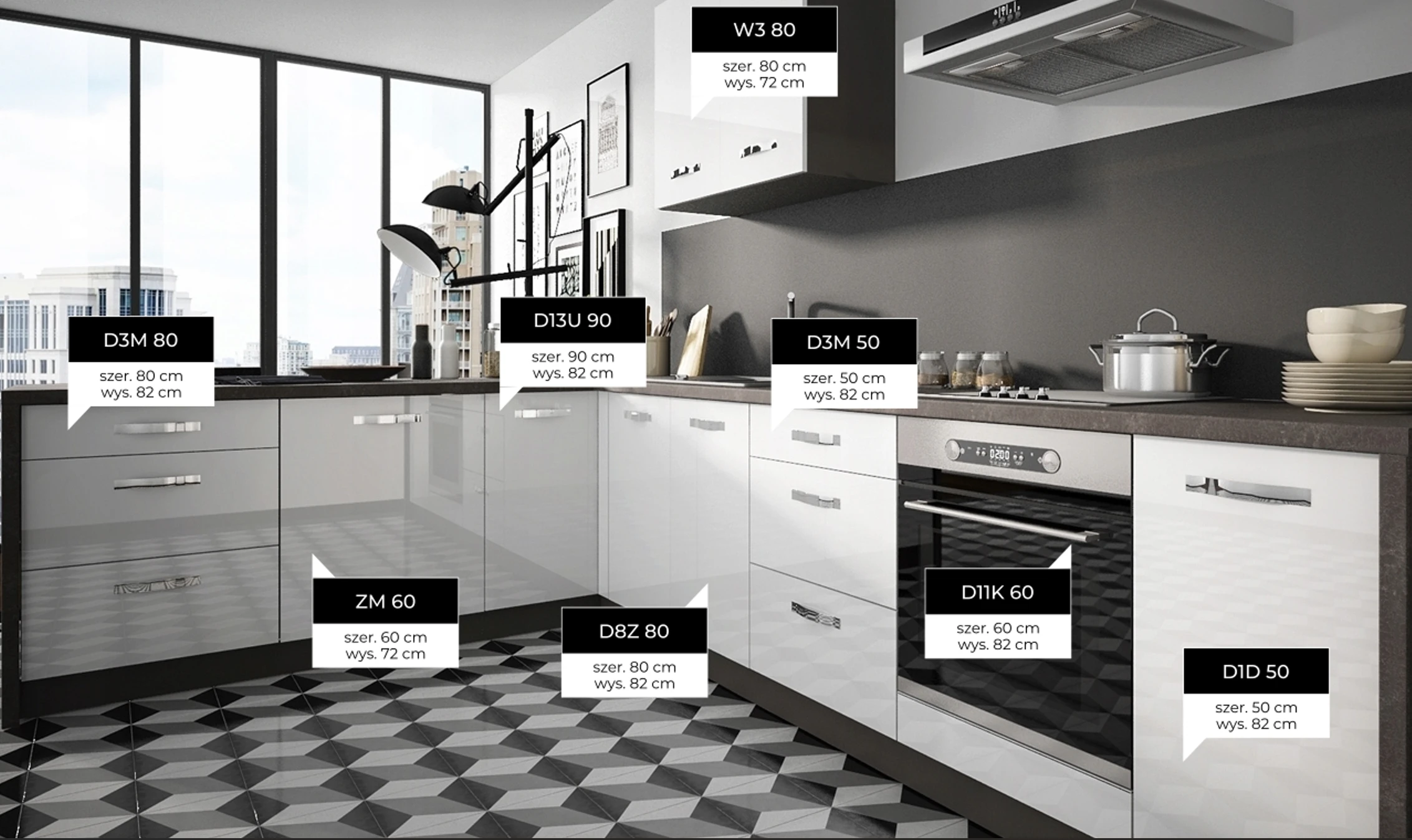 D3M 80 (800/820/500) – alsó szekrény három fiókkal, szélesség 80 cm – 3x BLUM fiók METABOX