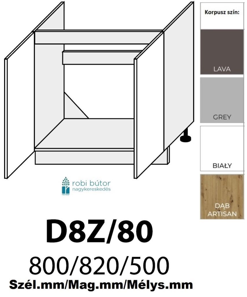 D8Z 80 (800/820/500) – alsószekrény mosogató alatt, két előlappal, szélesség 80 cm