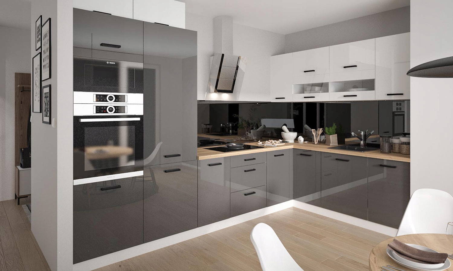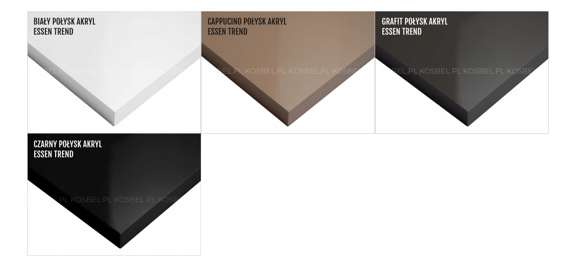 Lásd a fotókon. Bialy/White (FEHÉR), Czarny/Black (FEKETE), CAPPUCCINO, GRAFITSZÜRKE magasfényű akril frontok, melyek tükröződése üveg hatású.