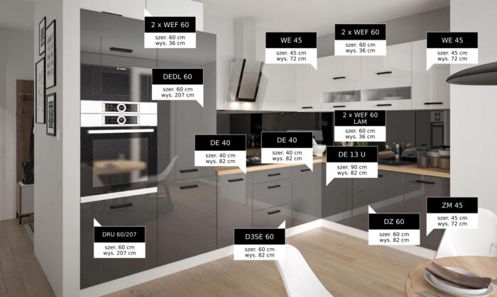 ESSEN TREND KONYHA MAGASFÉNYŰ FRONTOS "FEHÉR-GRAFITSZÜRKE" ÖSSZEÁLLÍTÁS