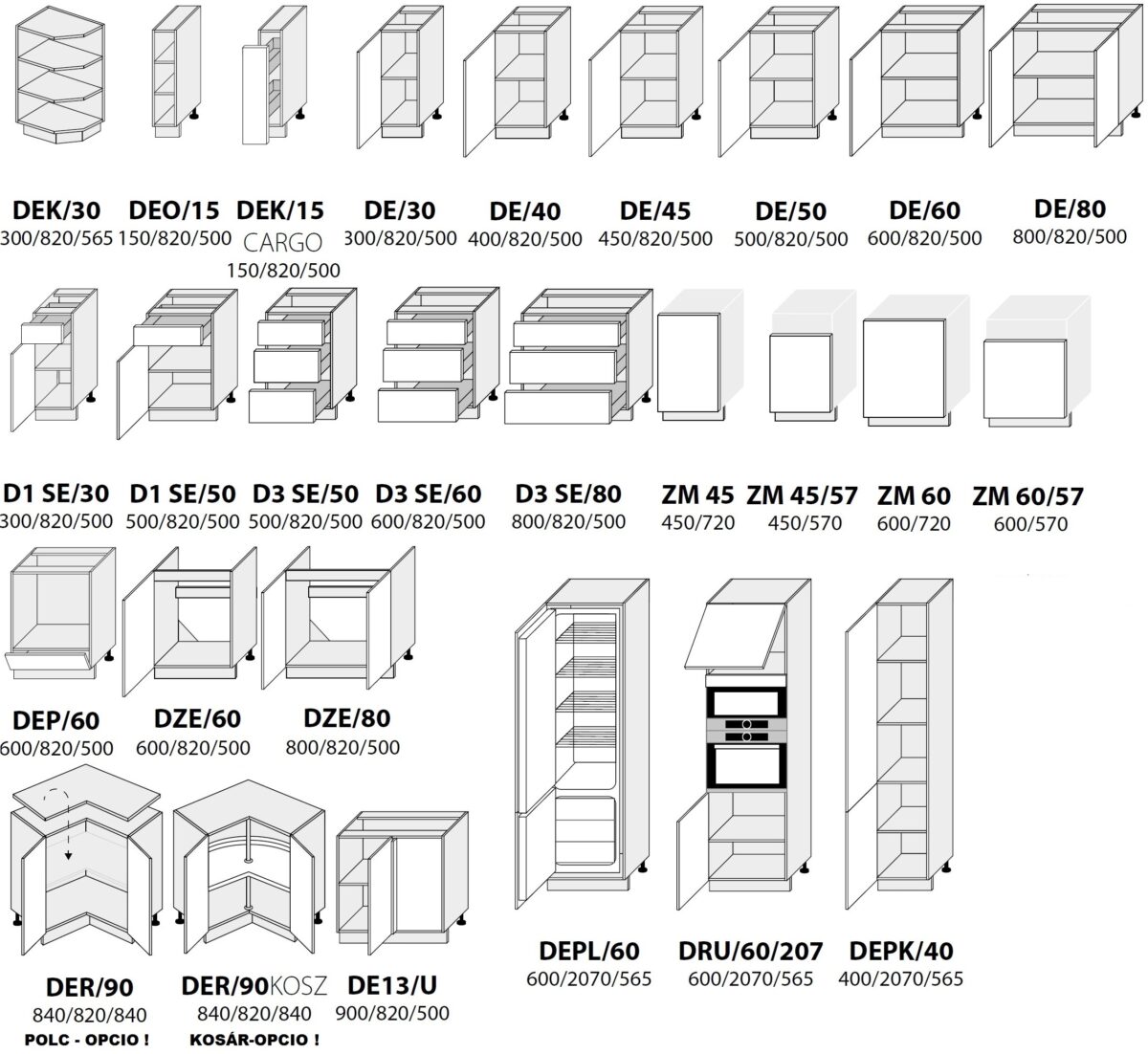 – Rendelhető kiegészítők: munkalap, munkalap összekötők/-fordítók/-végzárók, mosogató medence, csaptelep, külön fogantyúk, világítás, evőeszköz tartó az evőeszközös fiókba, felső elemek felrögzítéséhez fali szerelő sín. Ezen termékek rendelési feltételeiről minden esetben ügyfélszolgálatunkon, vagy a robi@robinagyker.hu E-mail címen tud felvilágosítást kérni.
