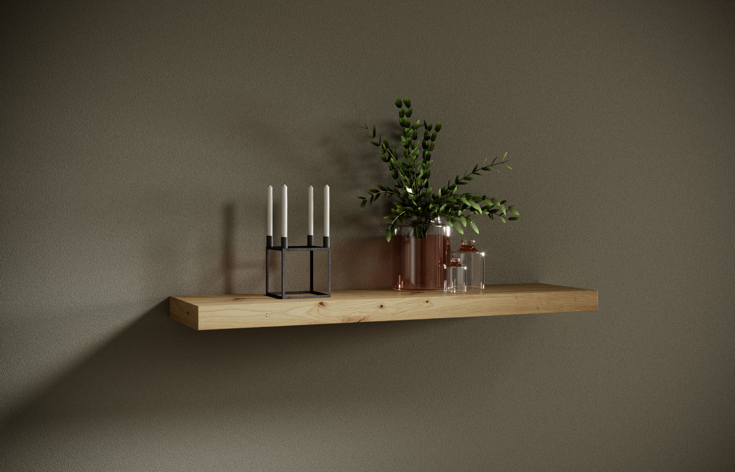 A lebegő polc hatása a letisztultság: a rögzítés nem látszik, a polc „úszik” a falon. Modern terekben, minimalista nappalikban és skandináv stílusban különösen népszerű. A hangsúly a tiszta vonalakon és az egyszerű formán van.