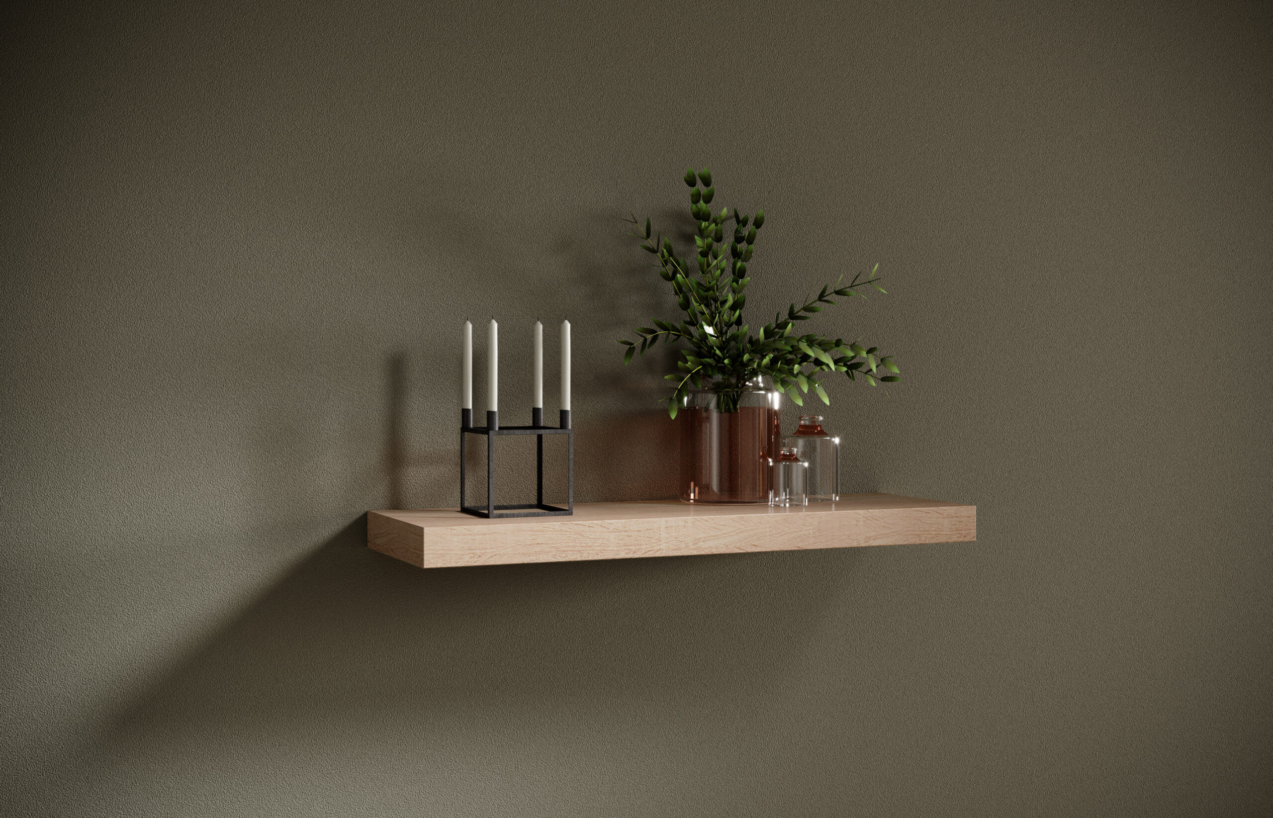 Ha „design” hatást szeretnél, használj hármas csoportosítást: három tárgy különböző magasságban, mégis összhangban. A dekor polc így lesz igazi fókuszpont a falon, nem pedig egyszerű tároló.