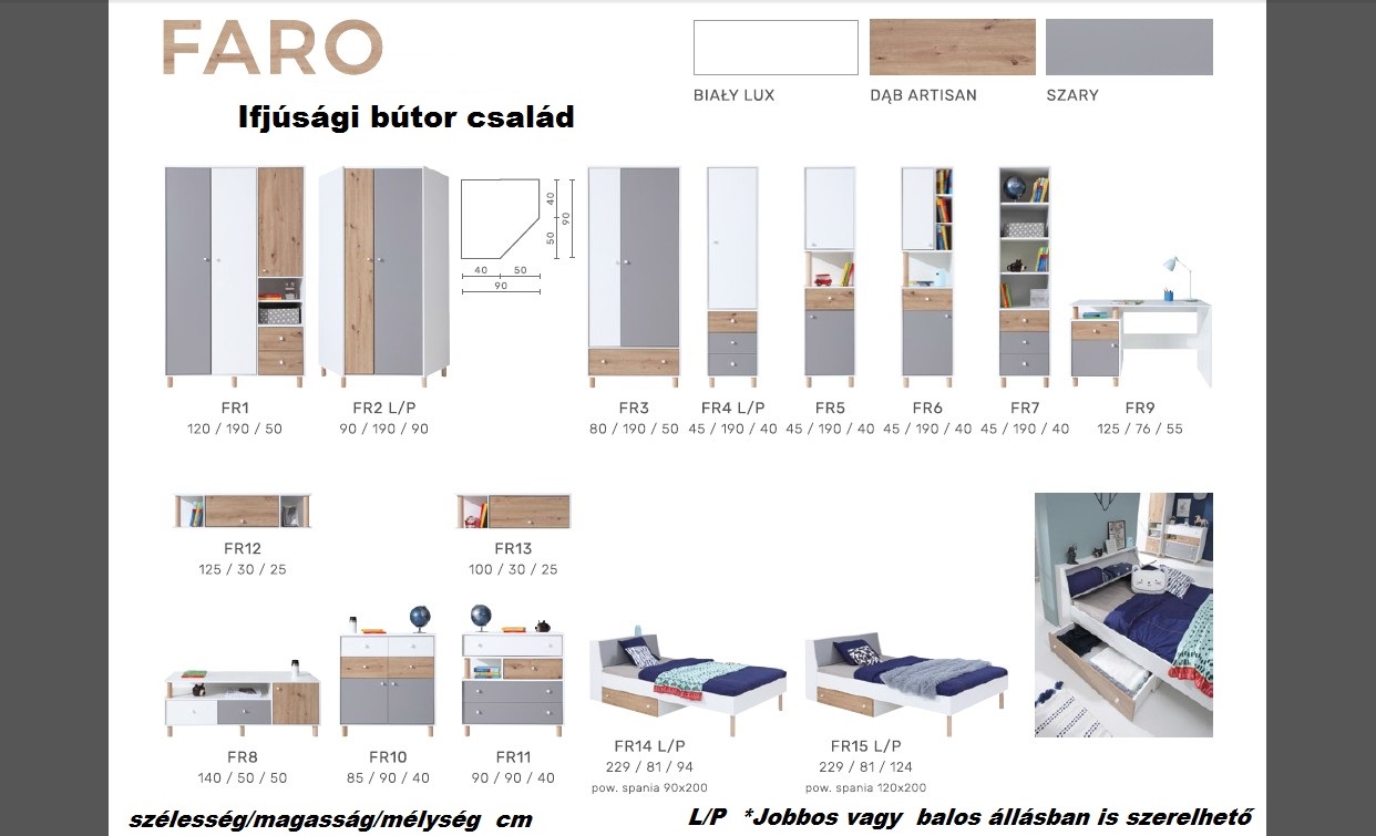 A FARO bútor család 15 eleméből lehet válogatni a kívánt összeállítást .
