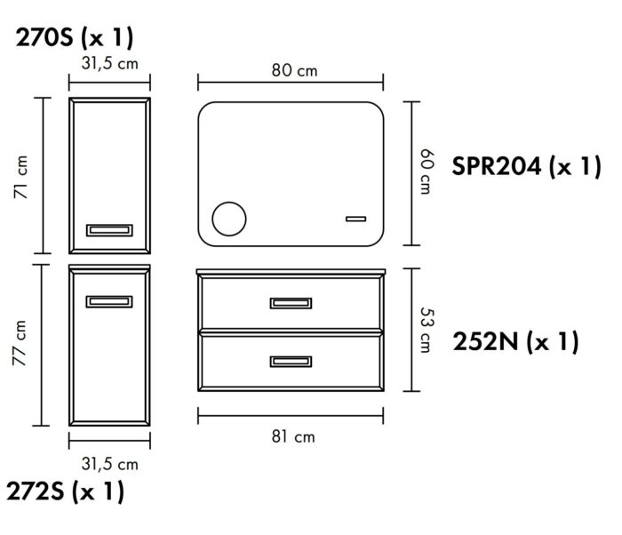 FLY 80-AS ART.252N + SPR204 + 270S + 272S kpl.Fürdőszoba bútor