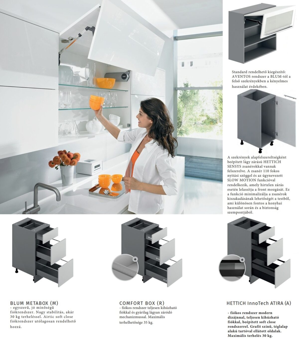 Ezek a fiókrendszerek mindegyike úgy lett megválasztva, hogy illeszkedjen a FORST elemes konyhabútor koncepciójához: praktikus, tartós, könnyen használható és később is jól bővíthető.