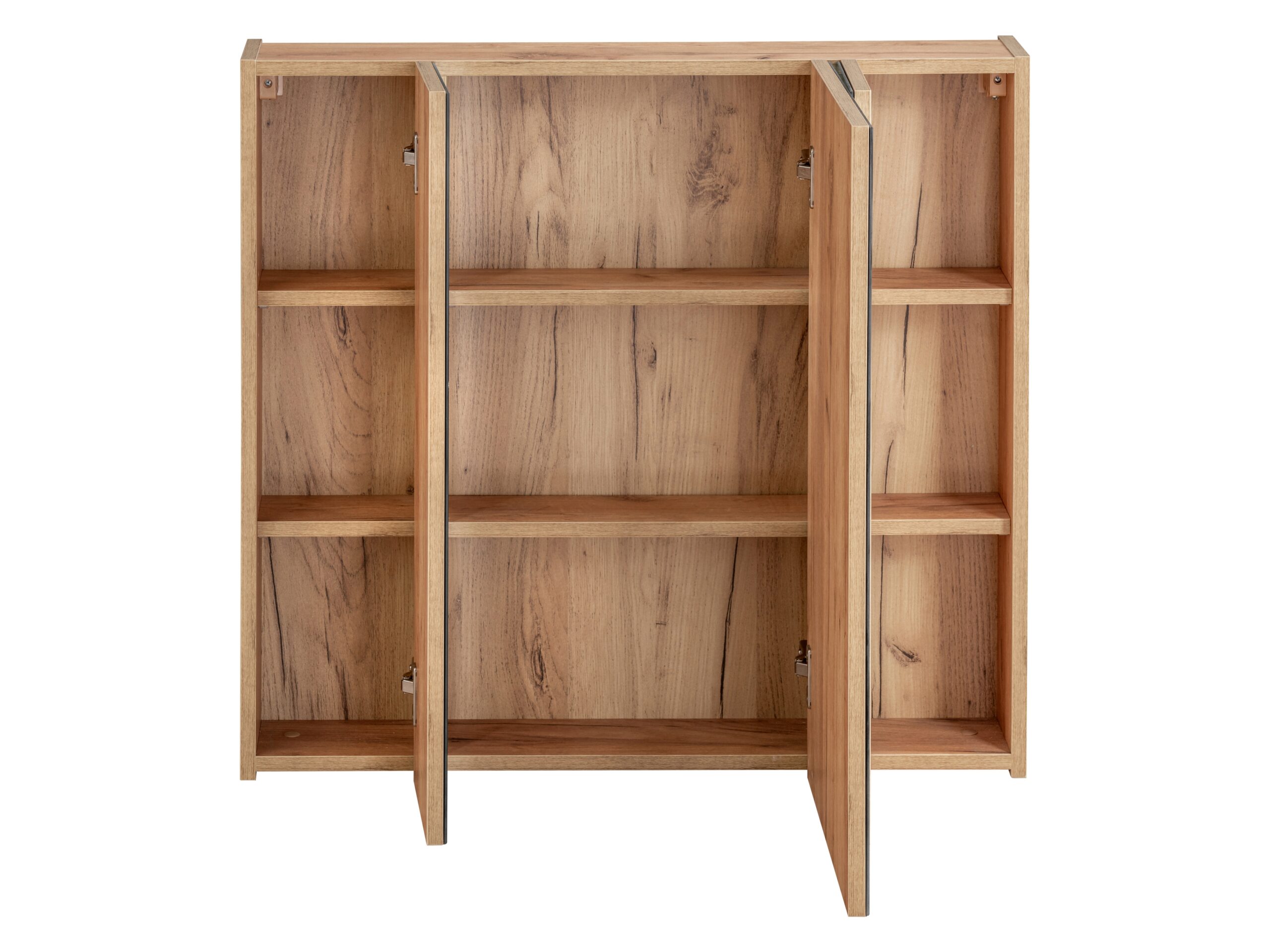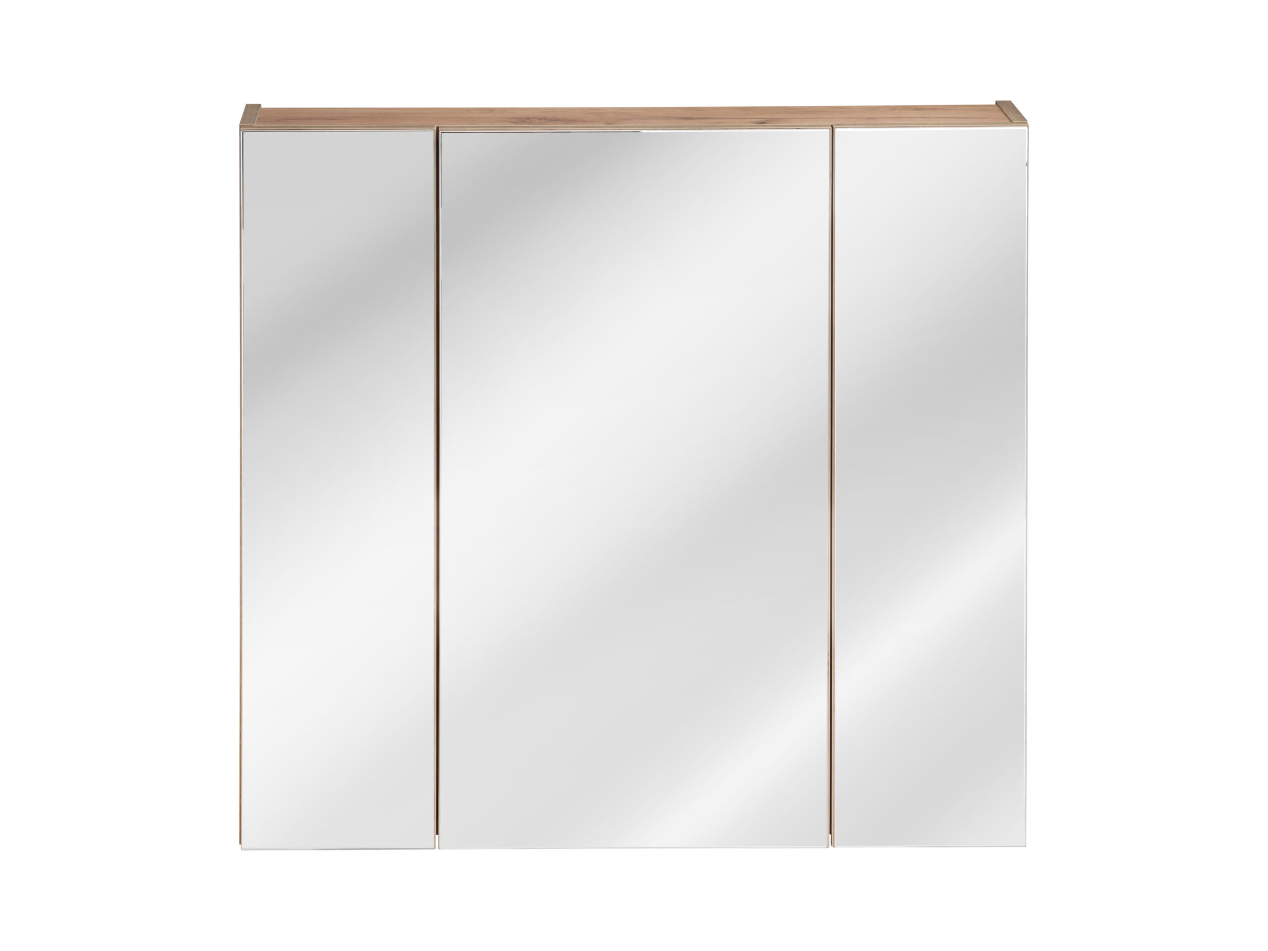 Fürdőszobai tükrös szekrény – 80 cm 3 ajtós SKU: CAPRI OAK 843A FSC Méretek: 80 cm (szé) × 16 cm (mé) × 75 cm (ma) Szín: Tölgy Złoty Craft Anyag: Laminált bútorlap / Tükör laminált lapon Garancia: 2 év |