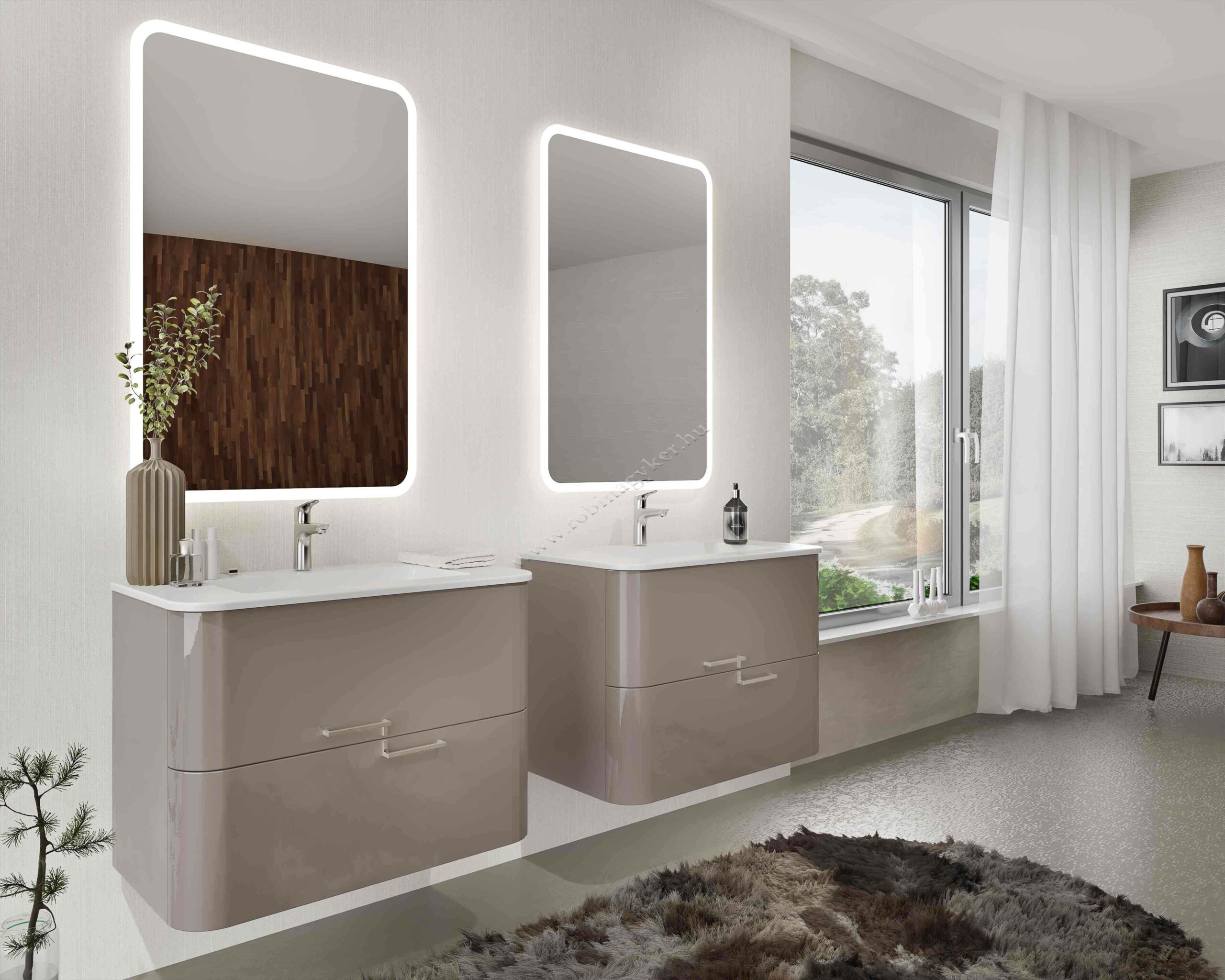 Az egyedi gyártói tervezésű Geoss fürdőszobabútor kollekció új koncepciót nyújt ívelt és modern stílusával, így bármely fürdőszoba méltó középpontja lehet.Két méretváltozatban kapható, 80 és 100 cm szélességben.Ezen fürdőszobabútor vonalvezetése követi a mosdókagyló ívét, az elemek között harmonikus egységet hozva létre, melyet a Soft Close technológia(csendes-lágy-csapódás mentes) még hangsúlyosabbá tesz.