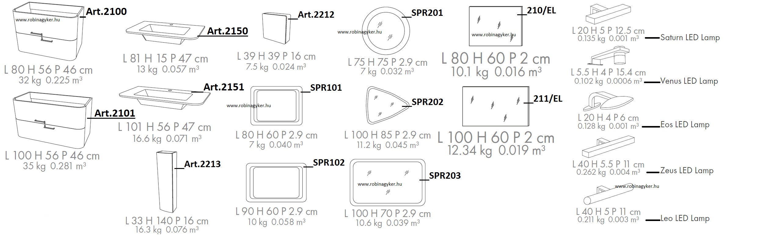 ART. 2100-F40 + 2150 + SPR101. kpl.Fürdőszoba bútor