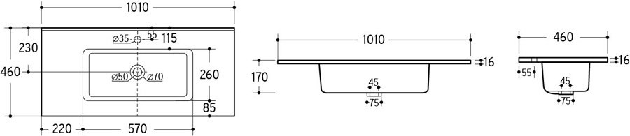 GO 100-8095 100-as Kerámia Mosdó:Szélesség: 101 cm Magasság: 17 cm Mélység: 46 cm