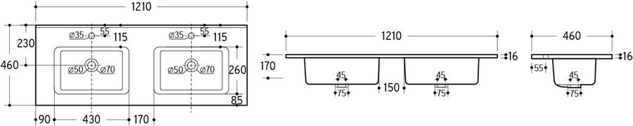 GO 120D-8095 120-as Kerámia Mosdó:Szélesség: 121cm Magasság:17 cm Mélység:46 cm