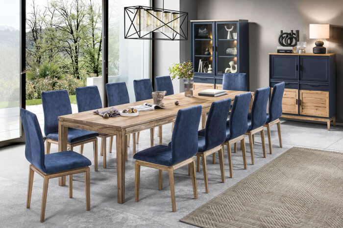 A klasszikus stílusú tölgyfa bútorok jellemzőit modern egyszerűséggel és lakkozott bútorszínekkel ötvöző kollekció. A viaszos tölgyfa elemek az alapanyag szépségét és természetét mutatják be, amelyből készültek. A régi tölgy rönkökből készült tölgy furnérok gyönyörű erezet rajzokat alkotnak a munkalapokon és paneleken. A tradíció innovatív a modernséggel, a faelemek jellegzetes felfrissülése formájában, amelyek mindegyik tömbben ismétlődnek, és láthatóak az antracit lakkozott elemek hátterében . Az átgondolt kialakítású és funkcionalitású tömörfa anyagok lehetővé teszik, hogy betöltse a szalonok és étkezők terét, miközben megteremti a feltételeket a barátságos családi légkörben való idő eltöltéshez .