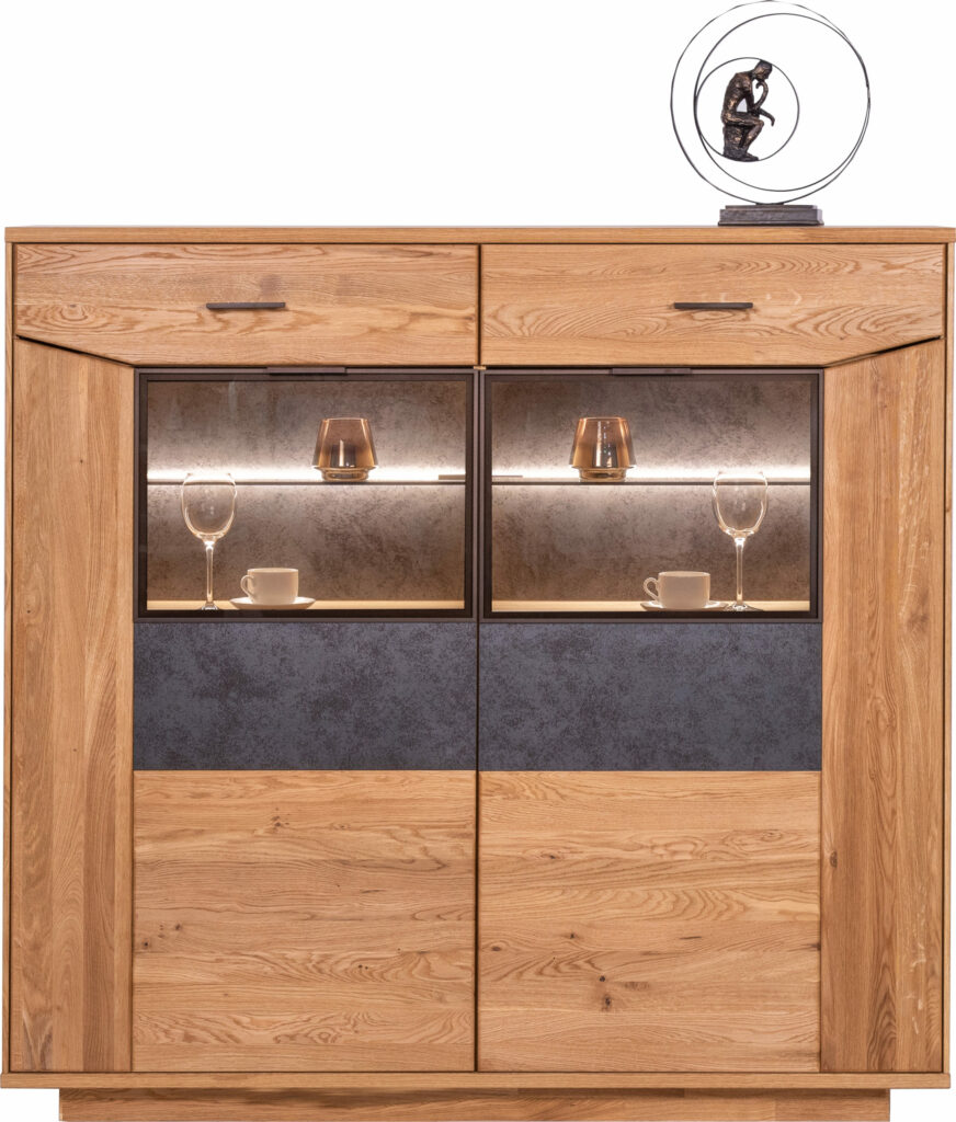 A klasszikus stílusú tölgyfa bútorok jellemzőit modern egyszerűséggel és lakkozott bútorszínekkel ötvöző kollekció. A viaszos tölgyfa elemek az alapanyag szépségét és természetét mutatják be, amelyből készültek. A régi tölgy rönkökből készült tölgy furnérok gyönyörű erezet rajzokat alkotnak a munkalapokon és paneleken. A tradíció innovatív a modernséggel, a faelemek jellegzetes felfrissülése formájában, amelyek mindegyik tömbben ismétlődnek, és láthatóak az antracit lakkozott elemek hátterében . Az átgondolt kialakítású és funkcionalitású tömörfa anyagok lehetővé teszik, hogy betöltse a szalonok és étkezők terét, miközben megteremti a feltételeket a barátságos családi légkörben való idő eltöltéshez .