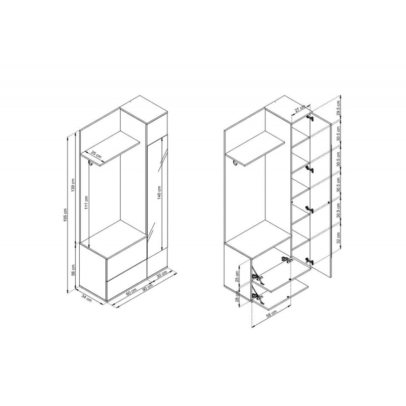 Szélesség: 90 cm Magasság: 195 cm Mélység: 34 cm