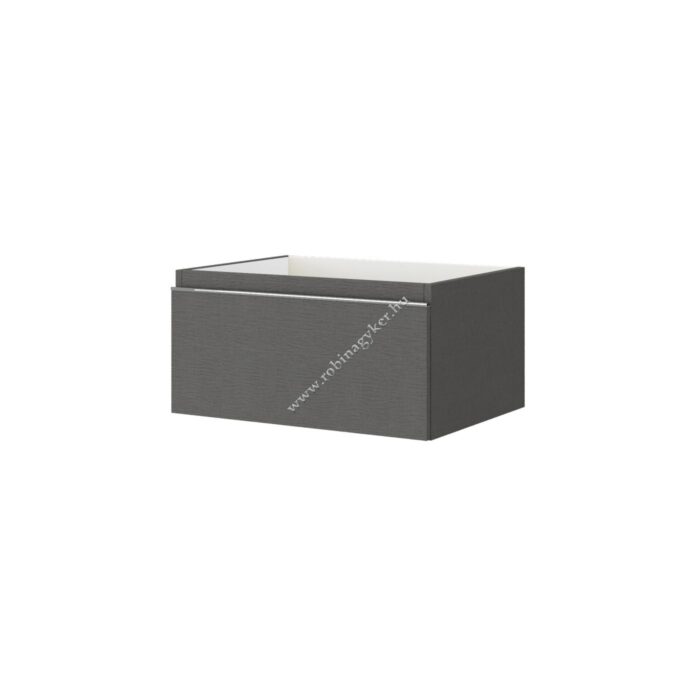 A függesztett mosdós szekrények: szintén hőfóliázott MDF anyagúak és fedőlap nélkül vagy fedővel ellátott bútordarabok sokoldalúak és praktikusak. A „Made in Italy” teljesen kinyitható és csendes csukódású belső fiók, valamint a front teljes hosszában tartó hangsúlyos, krómozott fémfogantyú tartósságot és pontos záródást garantál.