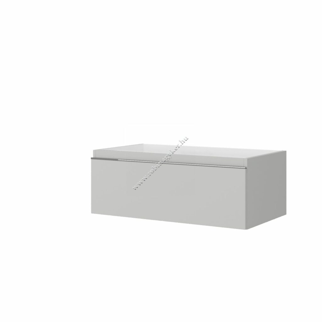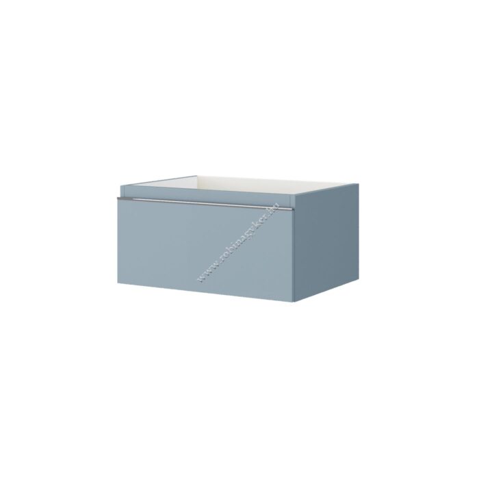 A függesztett mosdós szekrények: szintén hőfóliázott MDF anyagúak és fedőlap nélkül vagy fedővel ellátott bútordarabok sokoldalúak és praktikusak. A „Made in Italy” teljesen kinyitható és csendes csukódású belső fiók, valamint a front teljes hosszában tartó hangsúlyos, krómozott fémfogantyú tartósságot és pontos záródást garantál.