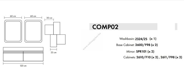Az ár a komplett összeállításra vonatkozik és a mosdó árát is tartalmazza.