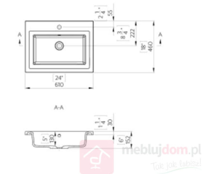 IRIS 610C 60-as Kerámia Mosdó:Szélesség: 61cm Magasság:15,2cm Mélység:46 cm