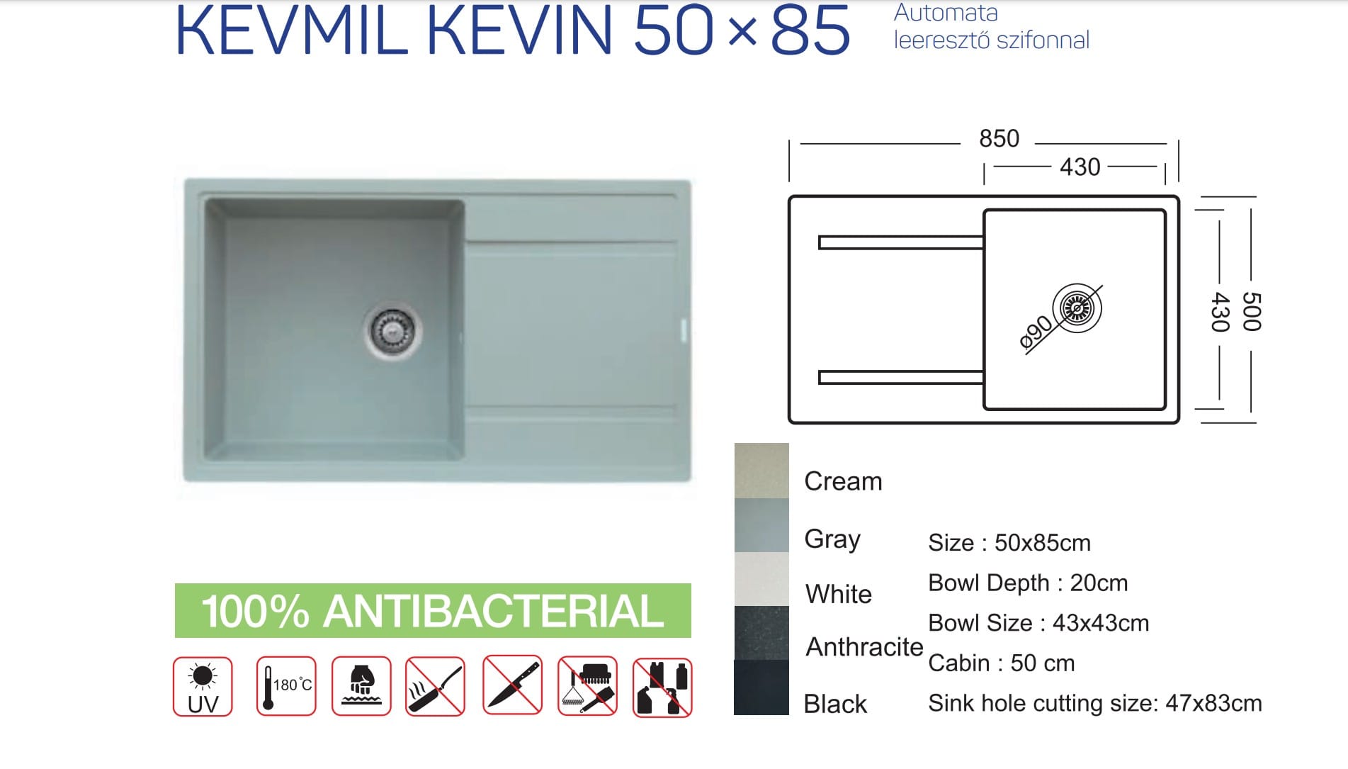 Kevmil GRÁNIT KEVIN 50×85 mosogatótálca Munkalapba vágós