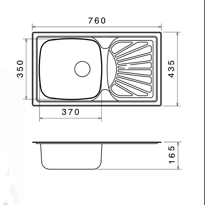 Kevmil KM-101 rozsdamentes egy medencés csepptálcás mosogató tálca 760 x 435 mm MUNKALAPBA VÁGÓS MOSOGATÓTÁLCA