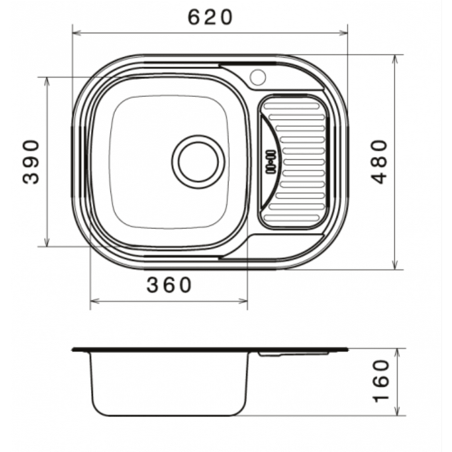 Mosogató méret: 620 x 480 mm